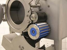 3-dimensional dicing machine 3DD is appropriate for cutting both vegetables and fruits. The three-dimensional cutting system, consisting of a slicing knife, a circle knife set and a crosscut knife set, cuts the products with rotating knives. Thereby even the most delicate products, like onion and paprika, are cut perfectly even in the smallest cutting sizes.