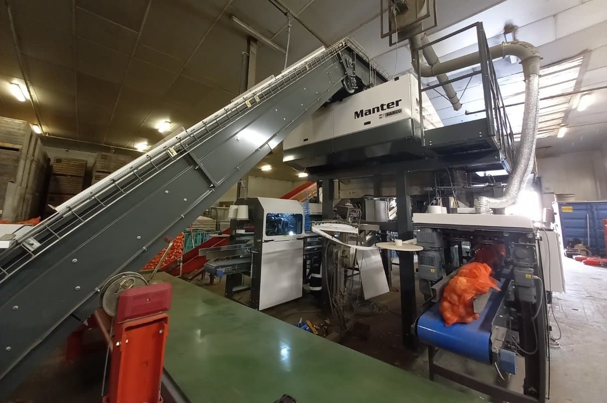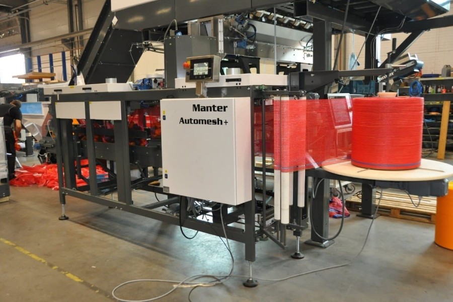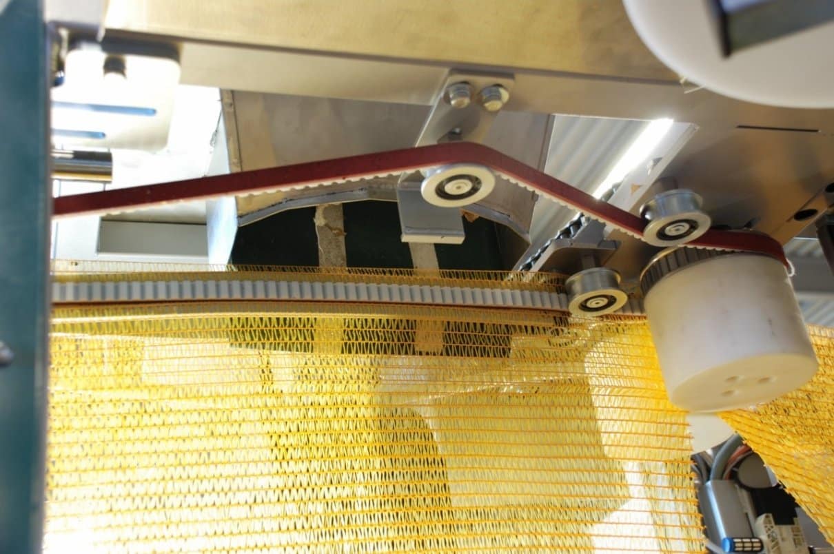 The AutoMesh+ is a fully automatic bagging machine developed for net-style bagging formed from roll stock. The bags are formed and separated using a vertical heating element that welds the mesh to create strong bag edges. Produce flows through the adjustable filling hole and into the bag that is carried on the support belt. The AutoMesh+ is a user-friendly upgrade that automates changeovers. The bag spool, heat seal bar, support belt and hot hand are all programmable and tailored to individual recipes. This translates into fast changeovers and minimizes downtime.