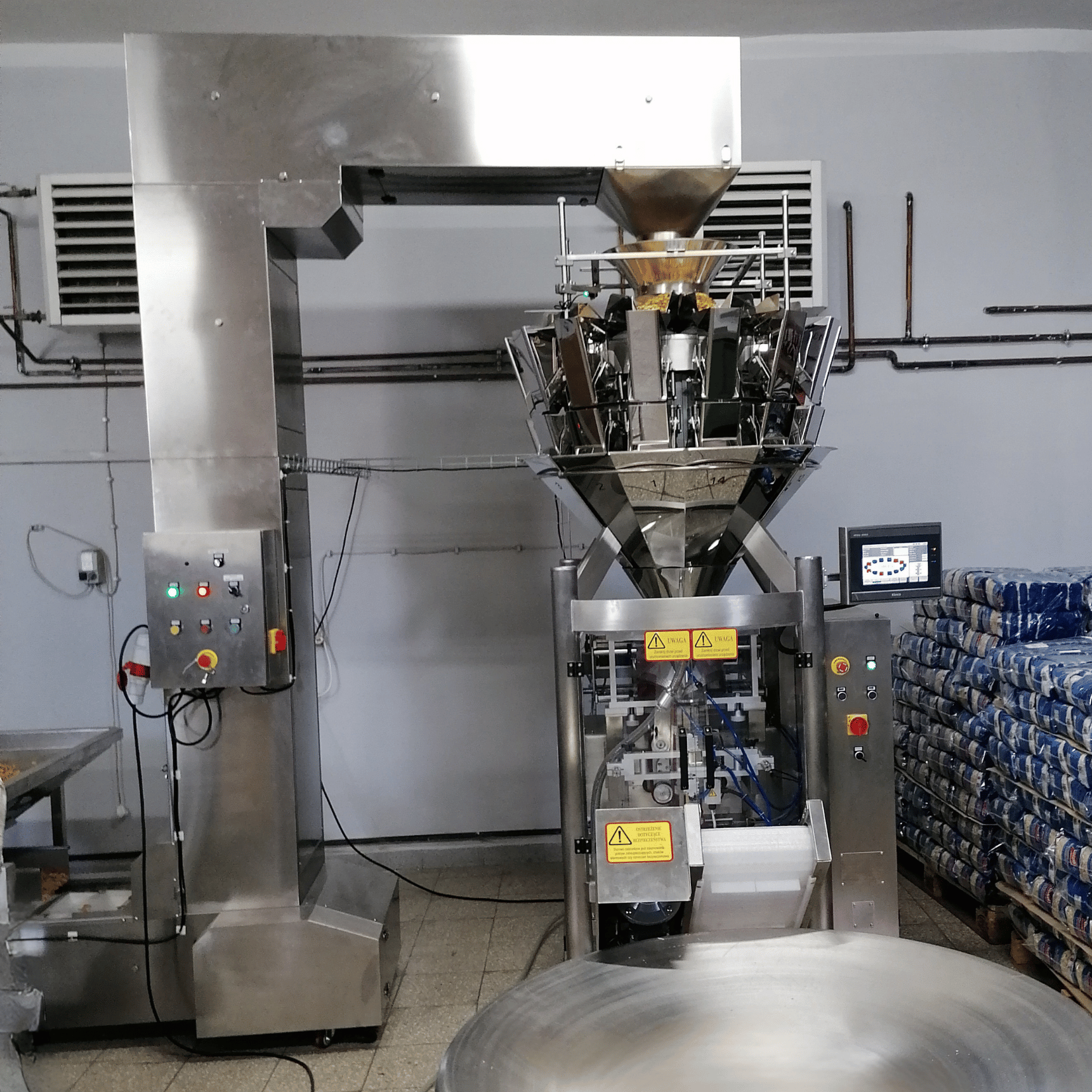 The Compack 14-500 packaging machine with a 14-head multihead weigher is dedicated to small packaging formats and products such as dragees, nuts, dried fruits, and similar items.